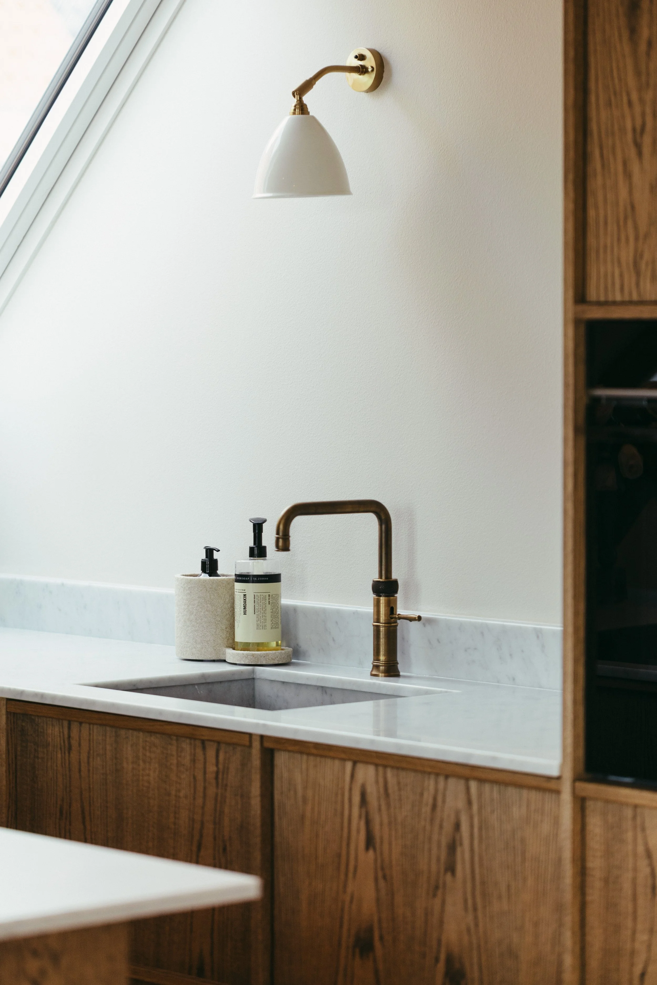 Working closely with our client, we drew and manufactured this beautiful kitchen. The tones of the wood and the color on the walls are perfectly matched, creating such an aesthetic atmosphere.